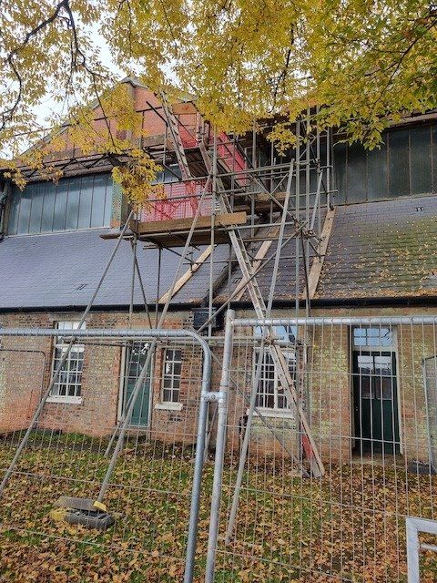 The main part of the project however, was to strenghten the control tower of the former airfield built c.1926 which was in danger of collapse. This involved cutting out damaged sections of the old concrete ring beams separating each floor and reinforcing them with specially-fabricated stainless steel armatures as well as adding a new asphalt roof in line with the original roofing.